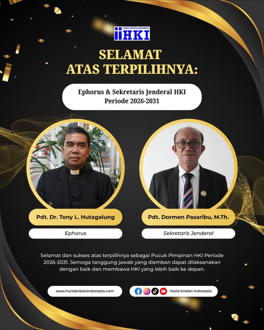 Pdt. Dormen Pasaribu, M.Th terpilih menjadi Sekretaris Jenderal HKI periode 2026–2031.”