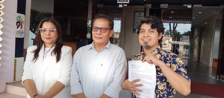 Aljoni datang dengan didampingi kuasa hukumnya Fauzi dan Nofita dari Kantor Hukum Nofita Putri Manik dan Rekan, pada Kamis (08/01/2026).