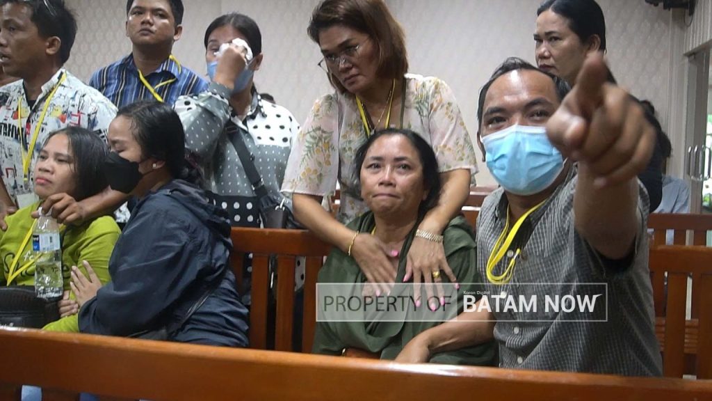 Protes dan tangisan istri kedua terdakwa juga disampaikan saat suami mereka digiring ke mobil tahanan Kejaksaan Negeri Batam yang terparkir di halaman PN Batam.