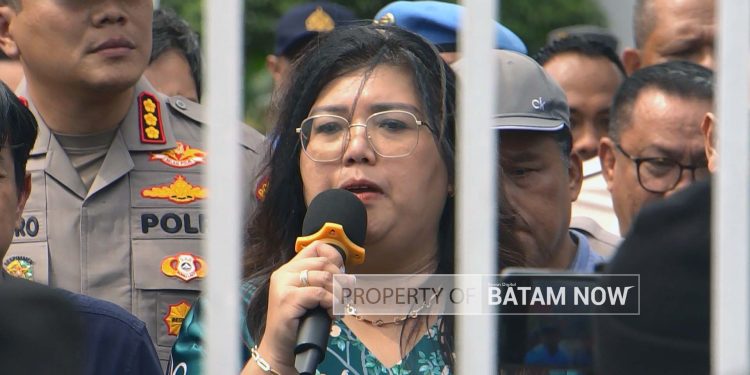“Sebagaimana tadi telah dikemukakan oleh bapak Kepala BP Batam, kami akan mengawal proses tender untuk pelaksanaan proyek ke Sengkuang. Yang kedua, kami akan mengawal juga mengenai truk-truk tangki air yang akan membantu bapak dan ibu,” jelas Ariastuty dari balik pagar kantor BP Batam yang memisahkannya dengan warga di luar.